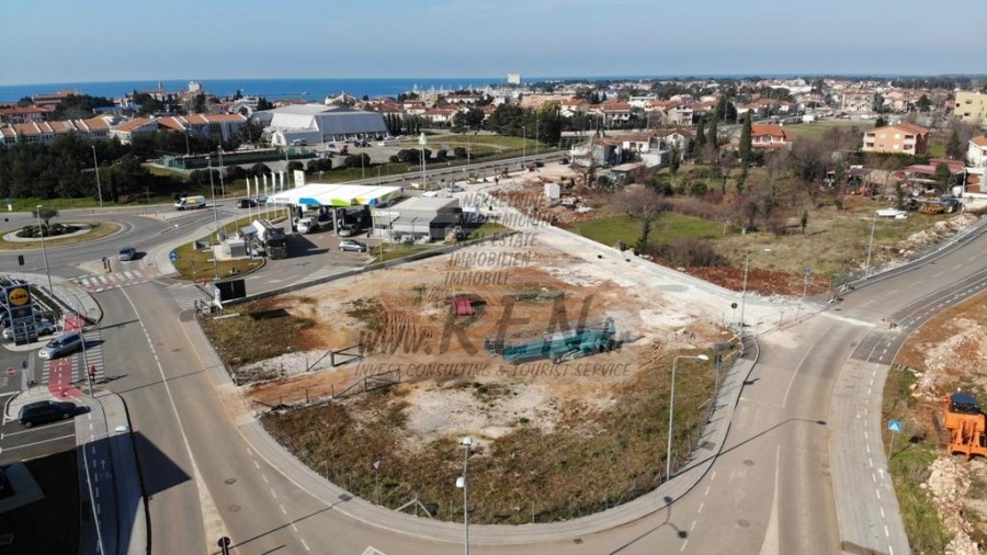 Baugrundstück hat eine Gesamtfläche von 2442 m2. Das Bauland hat insgesamt 2442 m2. Der beste Wirtschaftsstandort in Umag. Richtige Form des Landes, Zugang von Asphalt, alle notwendigen Infrastrukturen entlang des Geländes. Möglichkeit des Baus eines Gewerbegebäudes max. Grundfläche von 1221 m2. Die maximale Anzahl der Stockwerke des Gebäudes beträgt 5 oberirdische und 2 unterirdische Stockwerke. Ideale Immobilie für Investoren, die die attraktivste Position für ihr Geschäft suchen. In der Nähe von Lidl, Spar, Bipa, Teddy, Intersport, Tankstelle und mehr.