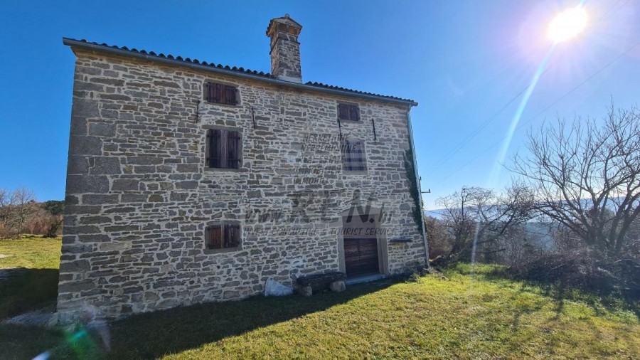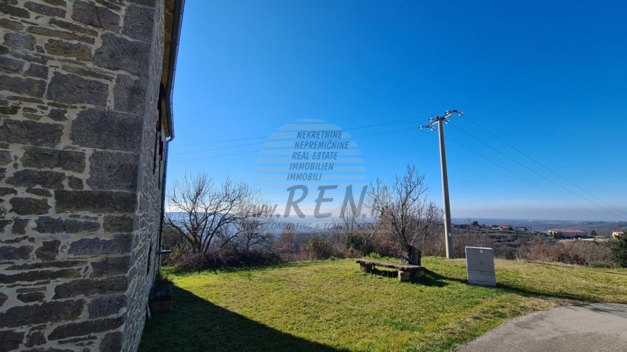 Auf einem schönen Hügel in der Nähe von Grožnjan mit freiem Blick auf die schöne Landschaft und das Meer steht ein freistehendes Steinhaus zum Verkauf. Einfamilienhaus aus Stein zu verkaufen, auf traditionelle Weise restauriert. Es hat 2 Etagen (plus Galerie) mit einer Gesamtfläche von 60 m2 auf einem Grundstück von 400 m2.