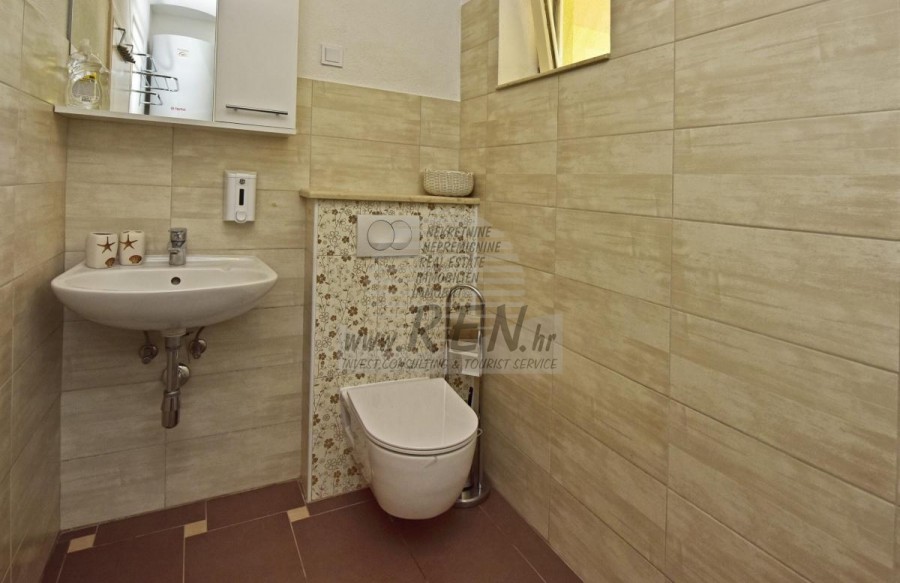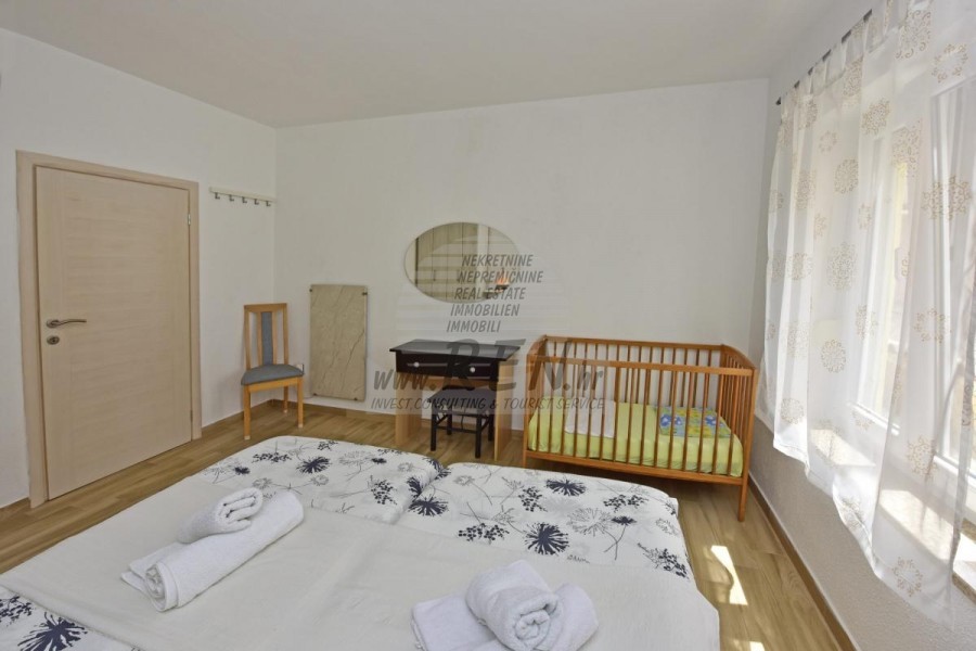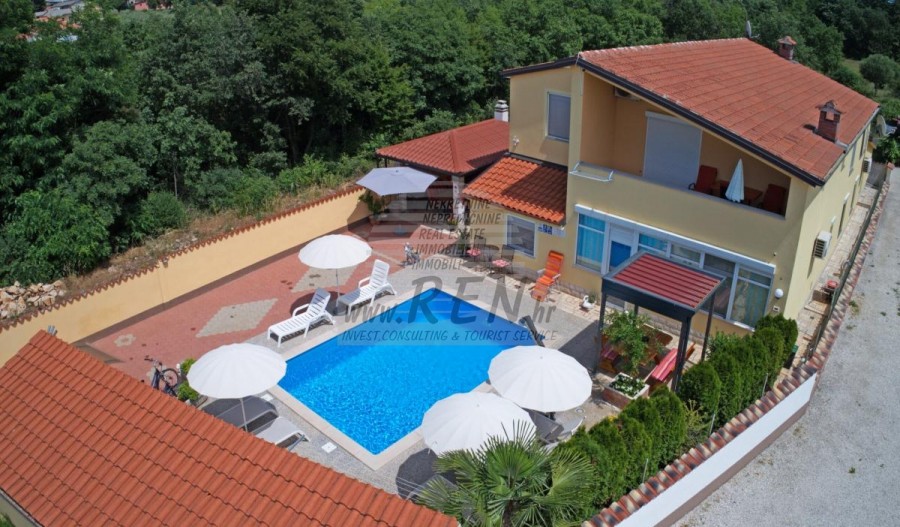 Das Haus hat insgesamt 280 m2, das Grundstück hat 514 m2, es ist 5 min. (5000m) vom Meer und von einem wunderschön angelegten Naturstrand, 5 Min. (5000 m) vom Zentrum von Poreč entfernt. Das Haus erstreckt sich über zwei Etagen, wovon sich drei Wohnungen im Erdgeschoss und zwei Wohnungen im ersten Stock befinden. Jede Wohnung verfügt über eine eigene Terrasse und alle Wohnungen sind komplett ausgestattet. Die Wohnungen bestehen aus einem Wohnzimmer, Esszimmer und Küche, zwei Schlafzimmern und einem Badezimmer. Die Wohnungen werden durch Klimaanlagen und norwegische Heizkörper beheizt. Im Hof dieses schönen Hauses gibt es einen Swimmingpool und eine Sommerküche, die an Sommertagen zusätzliche Entspannung ermöglichen. Das Haus liegt in ruhiger und schöner Lage inmitten der Natur und verfügt über einen eigenen Parkplatz.