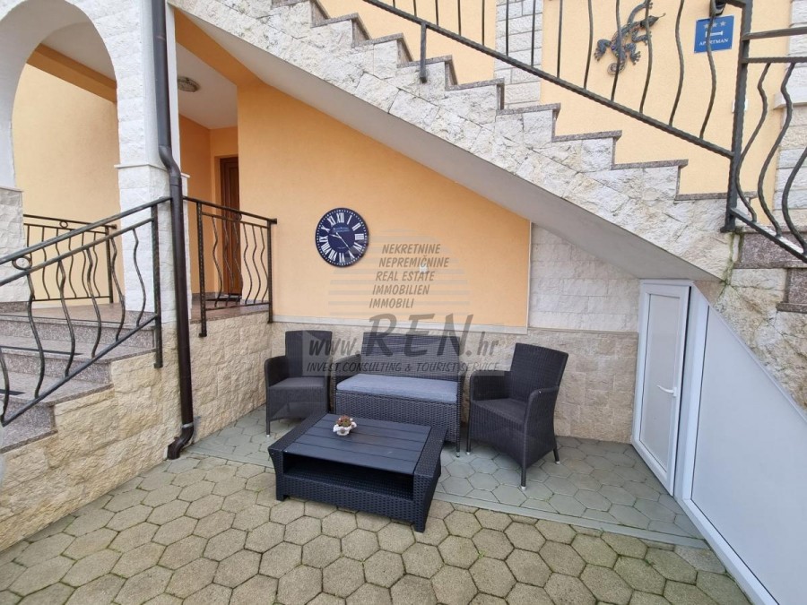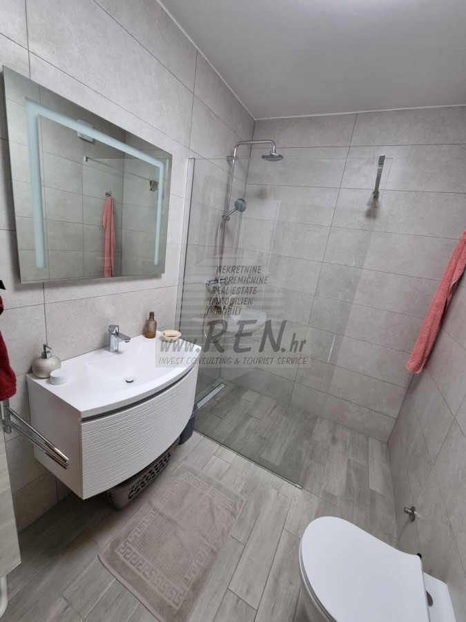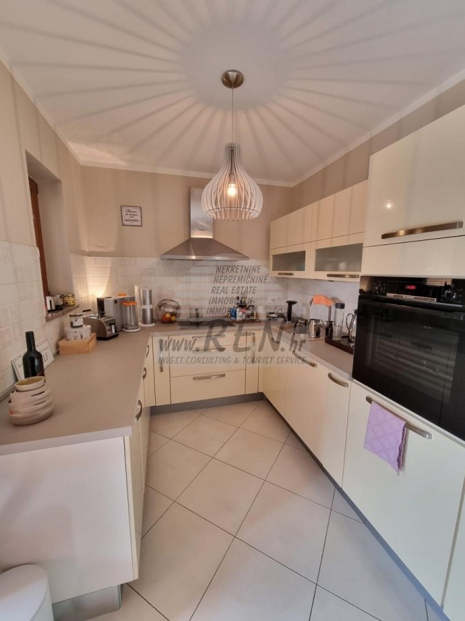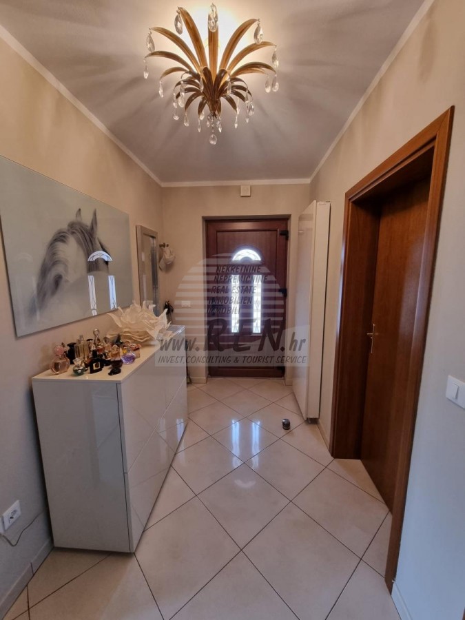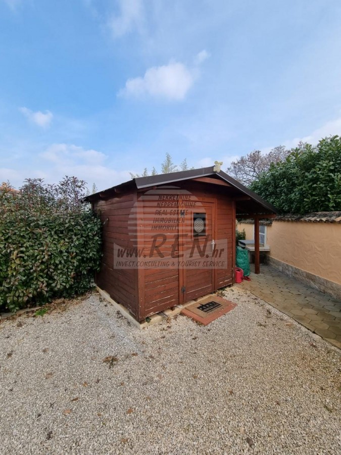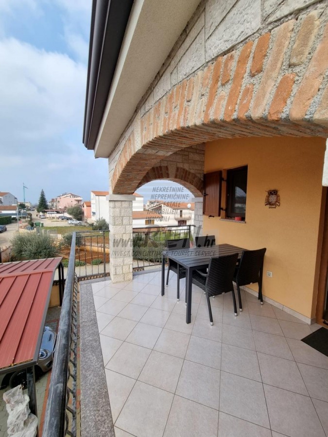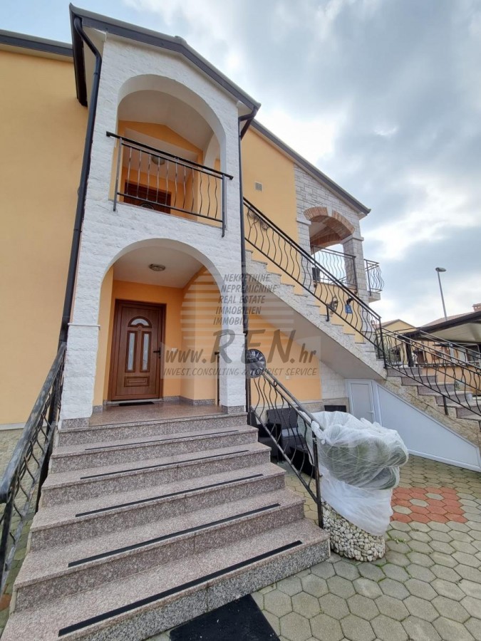 Das Haus hat insgesamt 144 m2, das Grundstück hat 644 m2, es ist 5 min. (2000m) vom Meer und von einem wunderschön angelegten Naturstrand, 5 Min. (2000 m) vom Zentrum von Poreč entfernt. Das Haus besteht aus zwei Wohnungen. Jede Wohnung erstreckt sich über zwei Ebenen und ist 72 m² groß, was ein großer Vorteil ist, wenn Sie eine Wohnung mieten und in der anderen wohnen möchten. Jede Wohnung besteht aus zwei Wohnzimmern, Esszimmer und Küche, zwei Schlafzimmern und einer überdachten Terrasse. Die Terrasse im ersten Stock bietet einen Blick auf das Meer. Die Wohnungen sind gut ausgestattet und sofort bezugsfertig. Jedes Zimmer verfügt über eine Klimaanlage. Für die Beheizung sorgt neben der Klimaanlage auch ein Pelletofen. Auf dem angelegten Gartengrundstück des Grundstücks befindet sich ein kleines Haus mit einer Sauna und einer großen Hydromassagewanne.