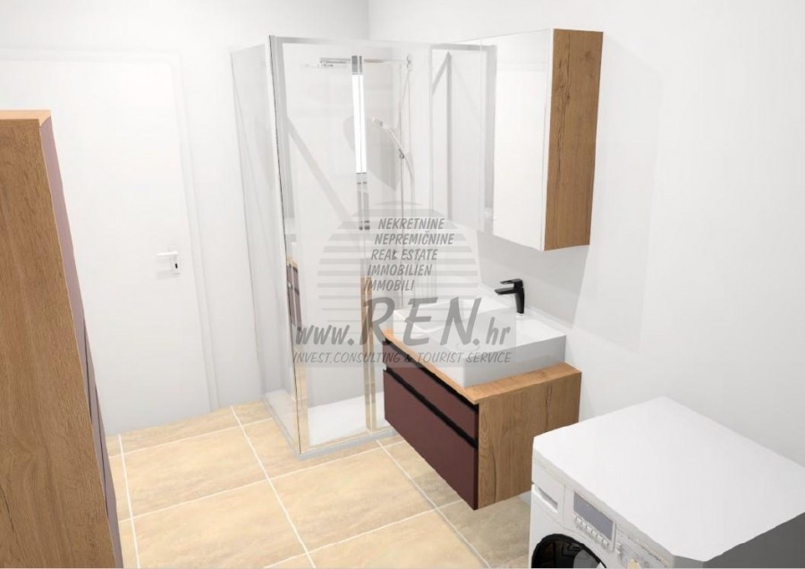 Die Wohnung in der Nähe von Buje hat insgesamt 62,94 m2, befindet sich im zweiten Stock, sie ist 10 min. (10000 m) vom Meer und vom wunderschön angelegten Strand entfernt, 5 Min. (2000 m) vom Zentrum von Buje entfernt. Die Wohnung besteht aus einer Küche/Wohnzimmer/Esszimmer, Schlafzimmer, Badezimmer, Abstellraum. Es ist mit Klimaanlagen und einem Holzofen ausgestattet. Es verfügt über einen eigenen Parkplatz und einen Gemeinschaftspool.