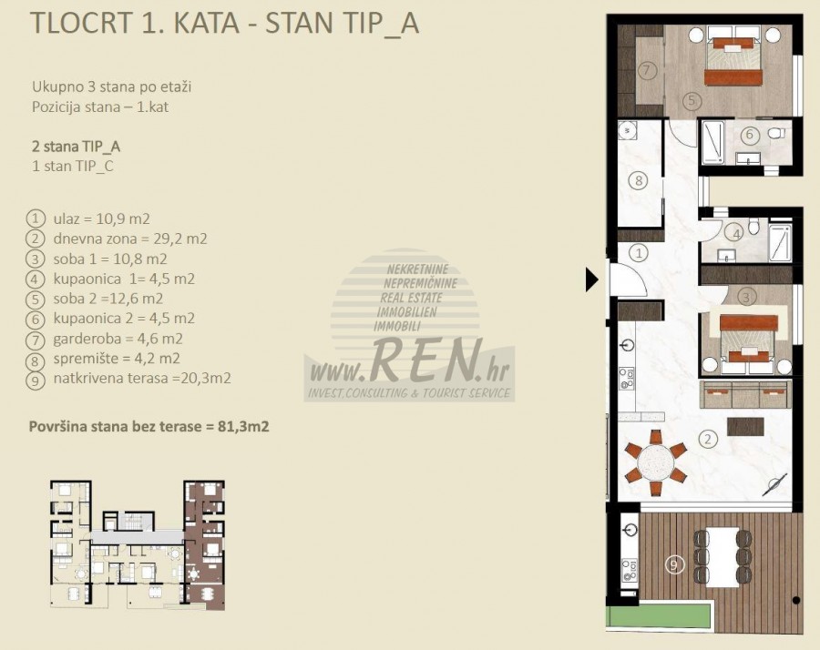 Wohnung 6 in Novigrad hat insgesamt 81,3 m2 ohne Terrasse, befindet sich im erste Stock, Bauphase, 5 min. (1000 m) vom Meer und vom wunderschön angelegten Strand entfernt, 5 Min. (1000 m) vom Zentrum von Novigrad entfernt. Die Wohnung besteht aus einer Küche/Wohnzimmer/Esszimmer, 2 Schlafzimmern, 2 Bädern, Abstellraum, Garderobe, Terrasse 20,30 m2. Besonderheiten der Wohnung: