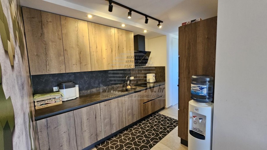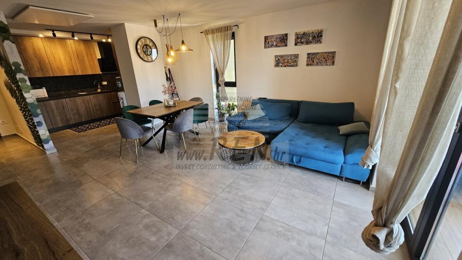 Die Wohnung in Novigrad hat insgesamt 87,97 m2, befindet sich im zweiten Stock, besteht aus Eingangshalle, Küche, Speisekammer, Wohnzimmer mit Esszimmer, Flur, drei Schlafzimmern, Badezimmer, Toilette, Terrasse und Holzschuppen. Die Wohnung wurde 2020 komplett renoviert. Neue Elektro- und Wasserinstallationen, Verglasung, Boden- und Deckenisolierung (Styropor und Steinwolle), PVC-Fenster wurden eingebaut, und an der Hauptleitung wurde ein Wasserenthärter installiert. Die Wohnung wird möbliert verkauft. Die Heizung erfolgt über Infrarotpaneele, die Kühlung über eine Klimaanlage. Der Parkplatz befindet sich vor dem Gebäude. Ein zusätzlicher Parkplatz befindet sich hinter dem Gebäude, wo es möglich ist, ein Elektrofahrzeug an der Steckdose aufzuladen. Die Wohnung ist nur etwa 100m vom Verkaufsladen, vom Restaurant 200m, Marktplatz 500m, Arzt 500m, Apotheke 500m, vom Flughafen in Pula 70 km und vom Flughafen in Portorož 30 km, von der Marine Novigrad 300m, und von dem Aquapark Istralandia 5 km entfernt.