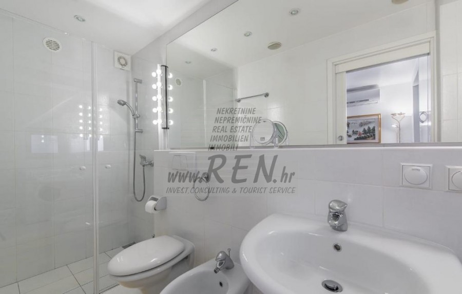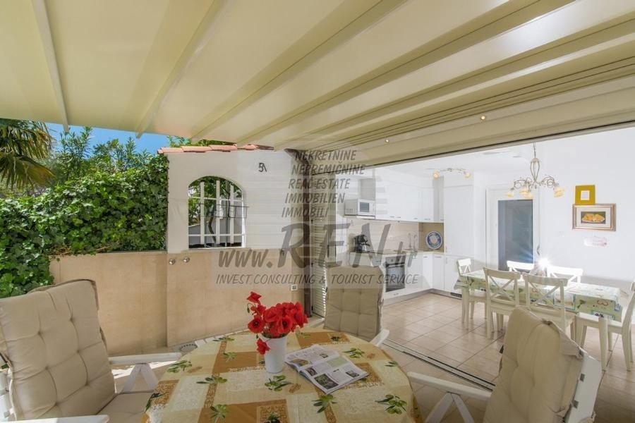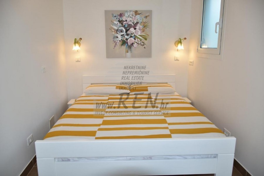 Haus in der Nähe von Novigrad mit einer Gesamtfläche von 93 m2, nur 5 min. (300 m) vom Meer und von schönen Natursteinstränden, 10 min. (3000m) vom Zentrum von Novigrad. Haus besteht aus Erdgeschoss und ersten Stock. Haus in einer Reihe. Komplett luxuriös im Jahr 2015 renoviert. Im Erdgeschoss gibt es 37 m2 Terrasse mit automatischem Schatten, Wohnzimmer, Küche, Esszimmer, Badezimmer, Schlafzimmer. Auf der ersten Etage befindet sich 2 Schlafzimmer, ein 4 m2 Balkon mit Meerblick. Das Haus ist komplett möbliert eingerichtet. Wi-Fi, im Erdgeschoss ist eine Fußbodenheizung und ein Kamin. Es gibt eine Klimaanlage in jedem Zimmer.